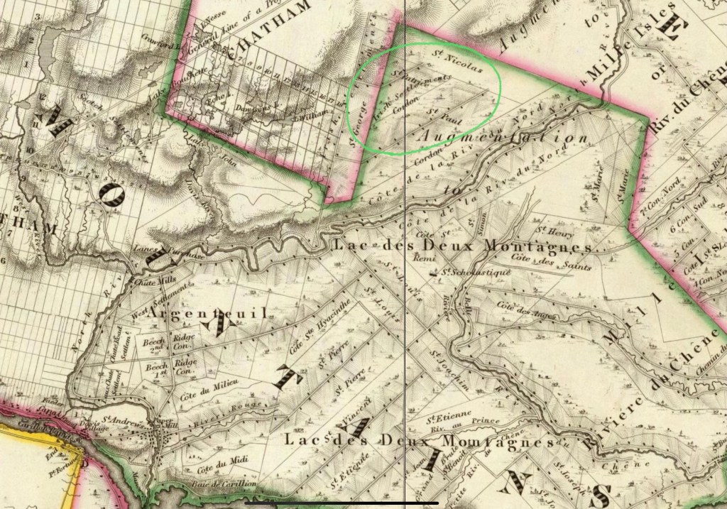 Joseph Bouchette’s 1831 survey of Lower Canada(1) identified at least 4 Irish speaking settlements in the Laurentians (Rawdon, Kildare, Kilkenny and Deux Montagnes. See Figure 1). Not all were squatters and not all came directly from Ireland.