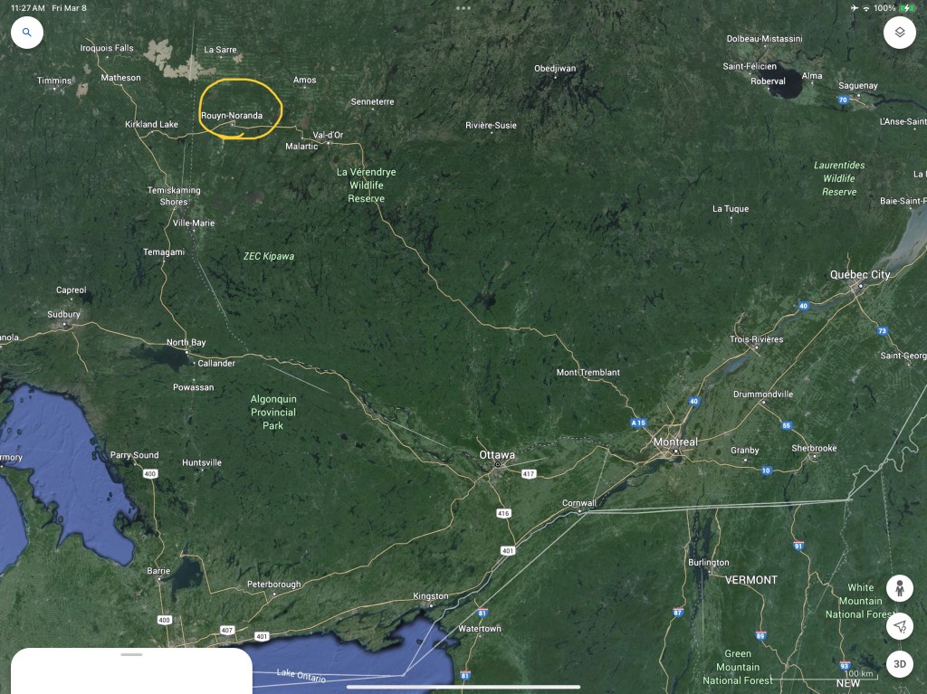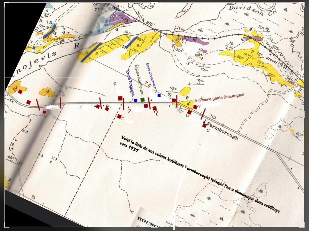 When I last passed through Farmborough, none of the original settlers nor their families remained. The bridge and highway had been rebuilt further north on the Kinojevis River. Anglican church and school had long-been razed and property unrecognizable. Rouyn-Noranda International Airport covered part of the settlement, with bush regrowth and newly constructed houses reclaiming much of the rest. Media search only revealed (7) Roman Catholic colonization and a nearby squatter community, near Malartic, burnt down in response to encroaching criminal activity.